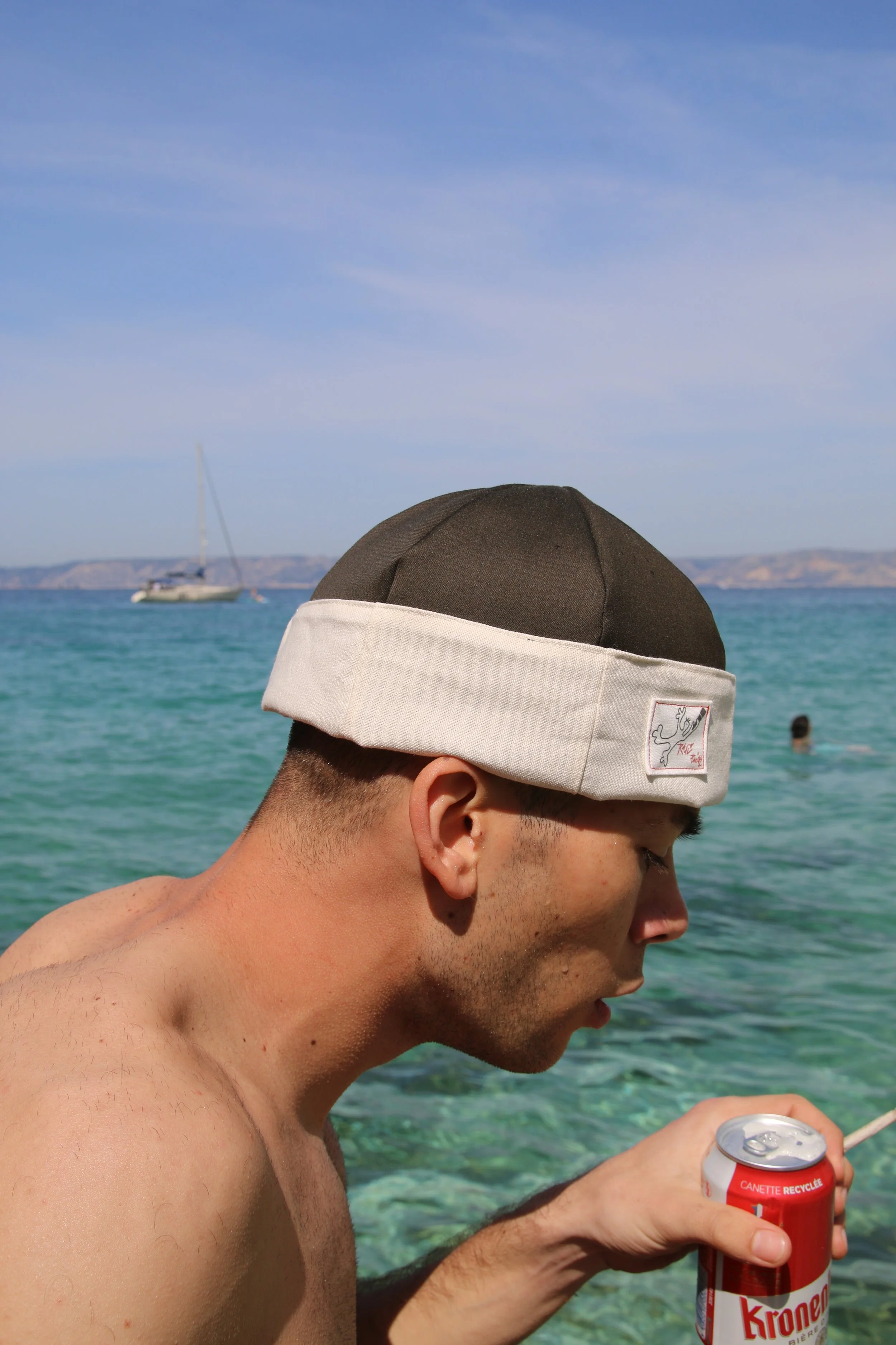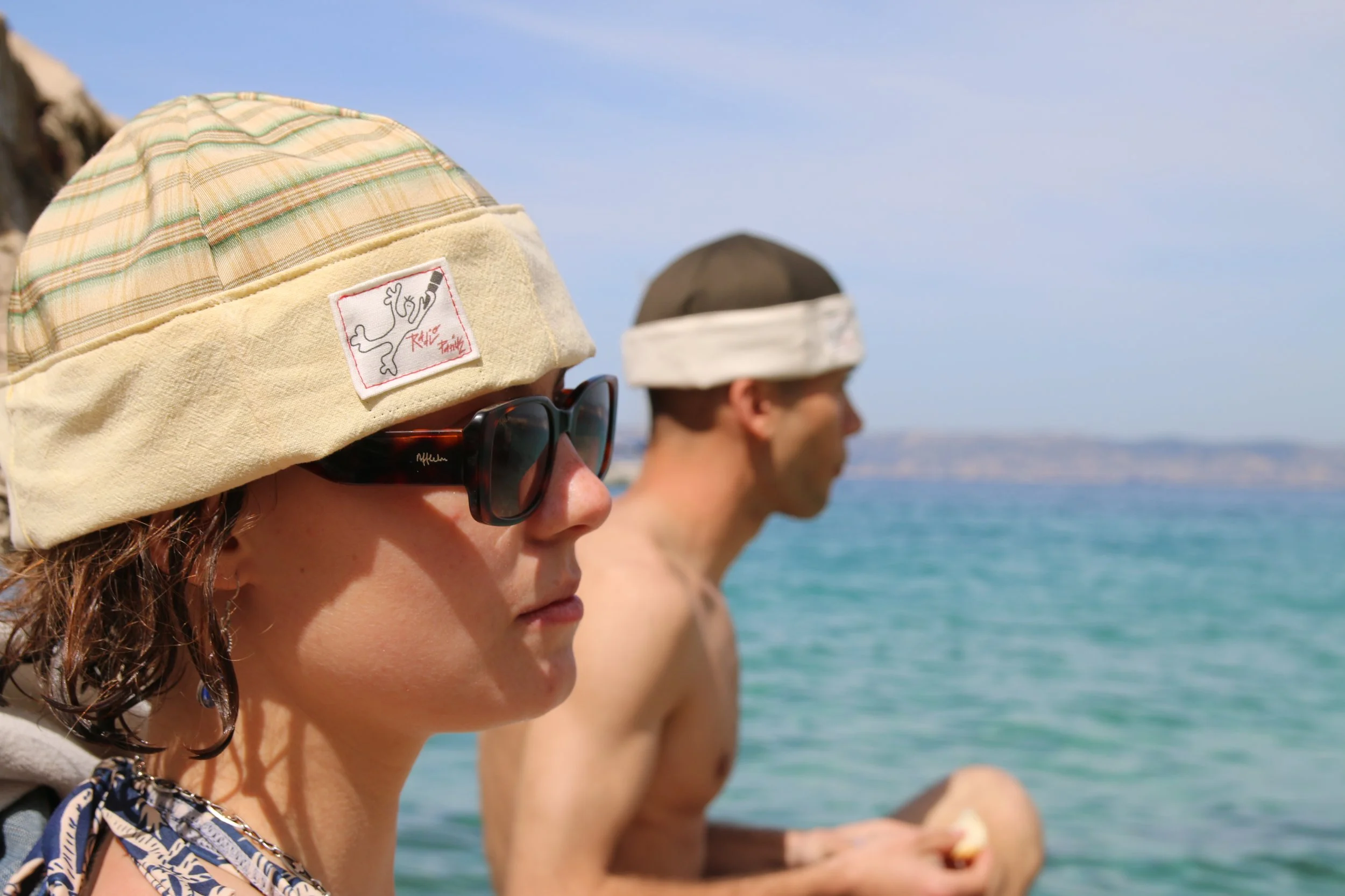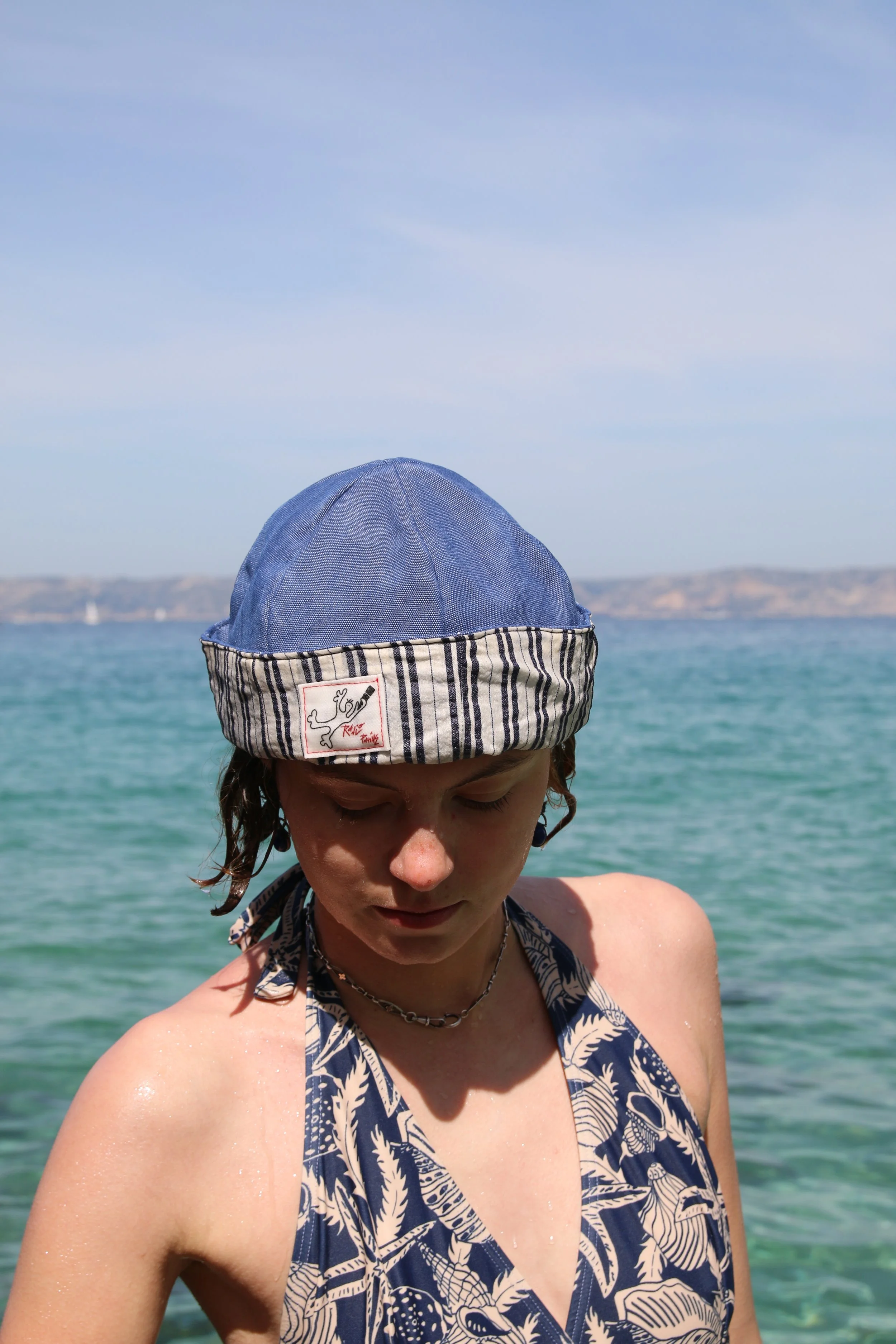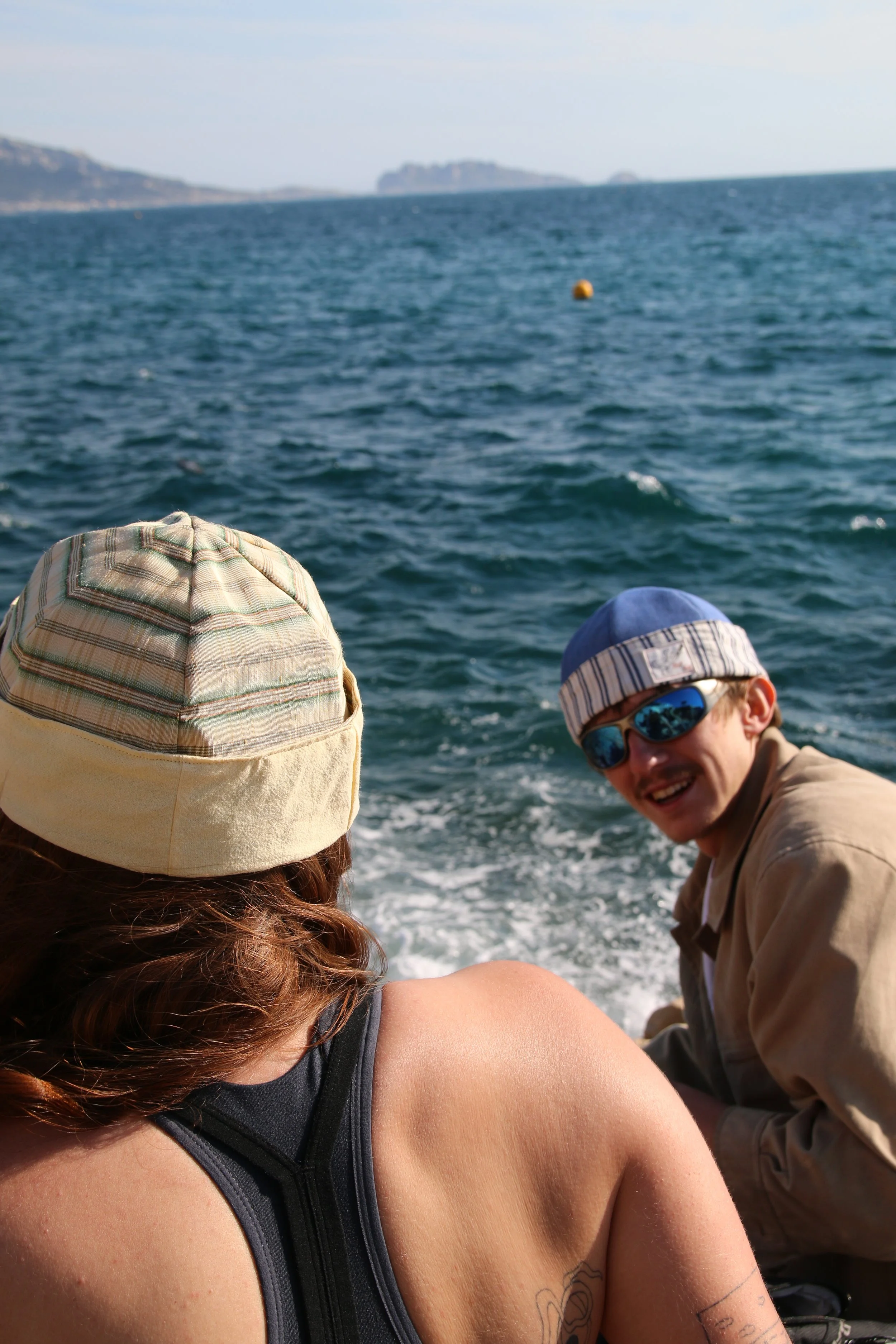 Les tissus sont soit de seconde main (c’est le cas de la doublure des bonnets jaune et marron) ou issu d’un magasin de destock marseillais. Et, encore plus fou, tous les trajets entre le lieu de production et les points de vente de tissus ont été effectués en vélo !