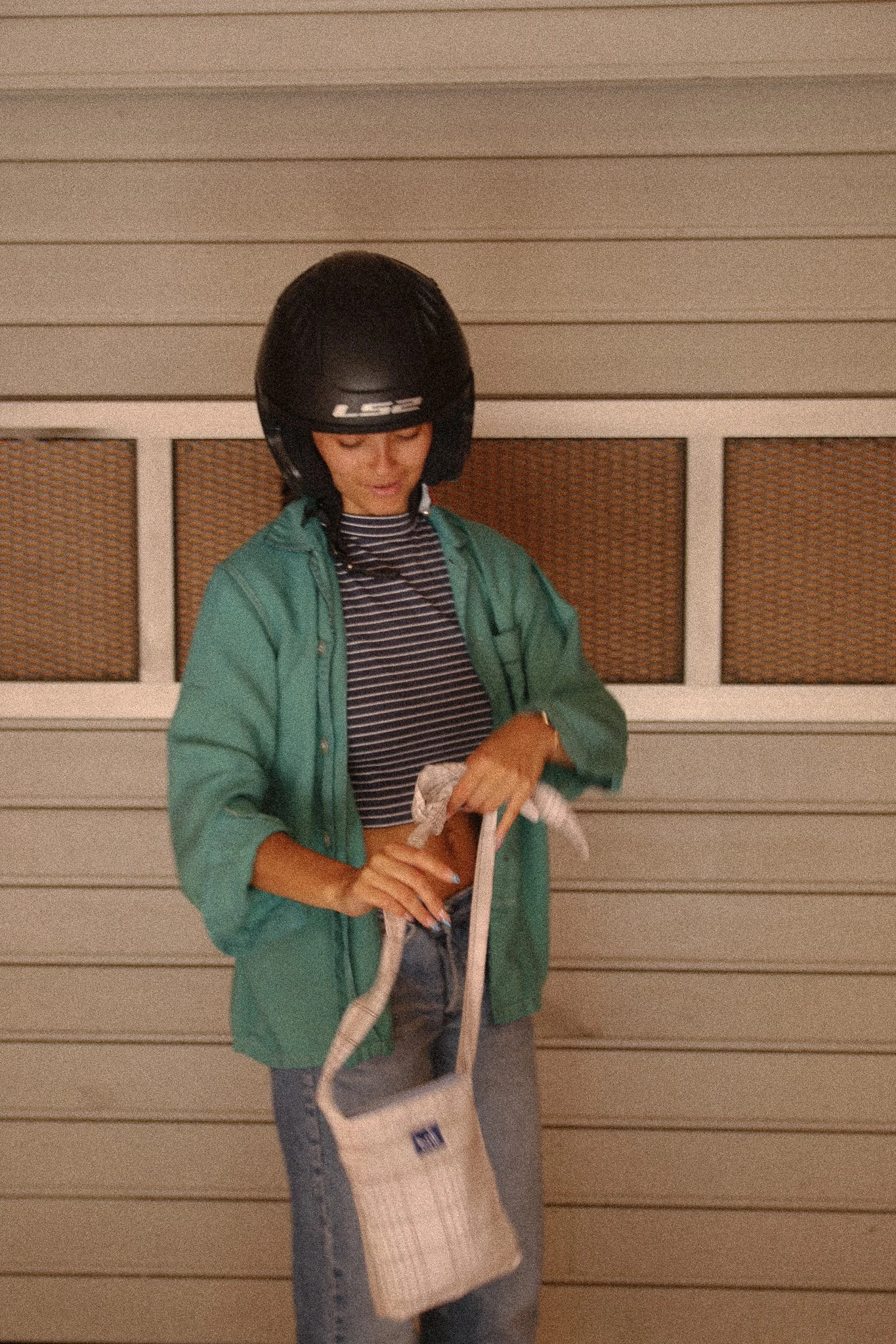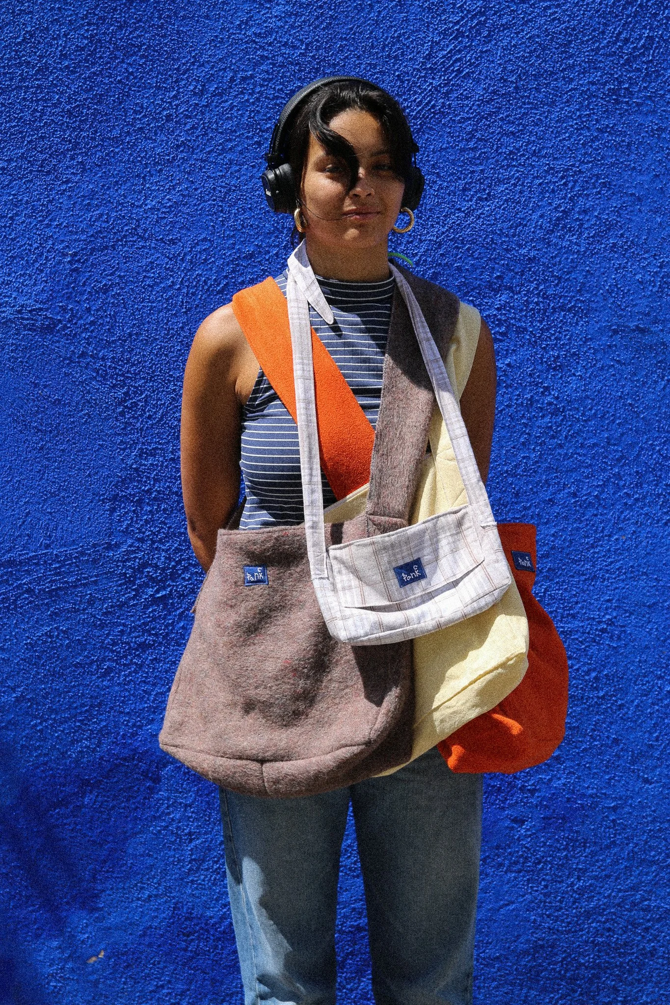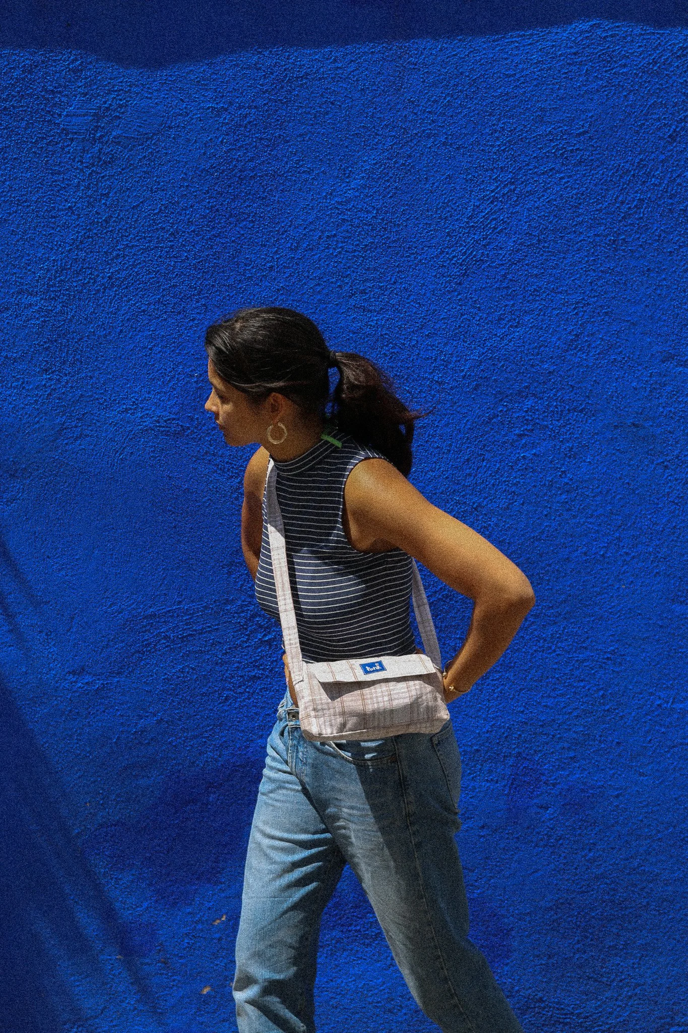 Sur la photo est présentée le sacolo quadrillé, il existe également en jaune et en marron.
